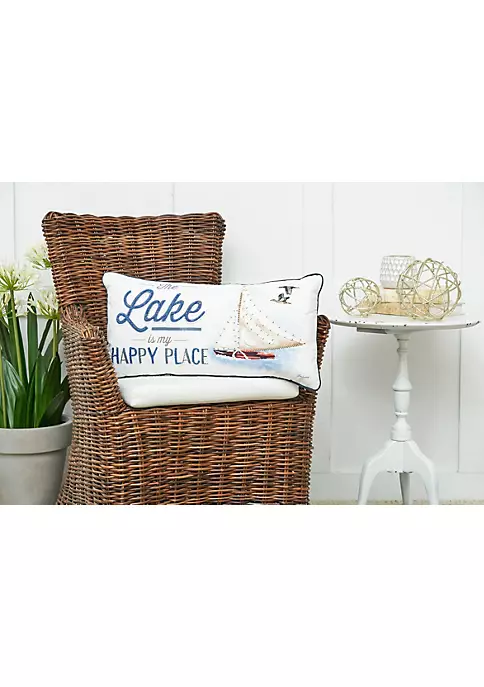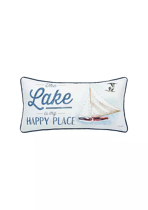 12″ x 24″ Lake Is My Happy Place Printed and Embellished Throw Pillow