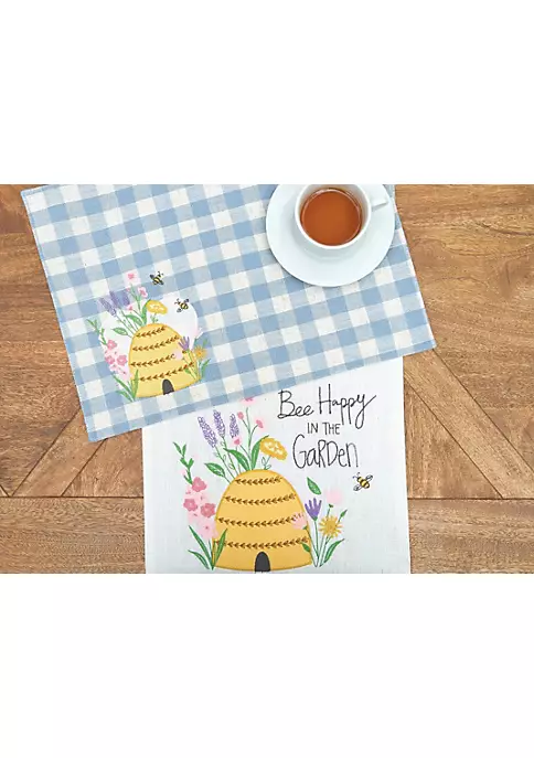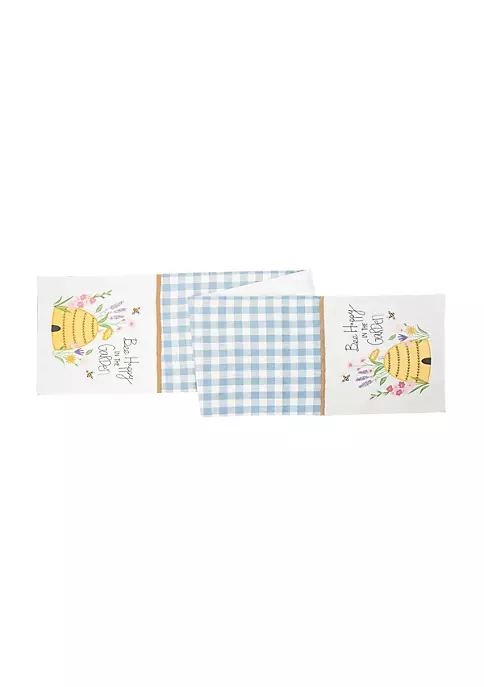 13″ x 72″ Bee Happy In Blue Embroidered Table Runner
