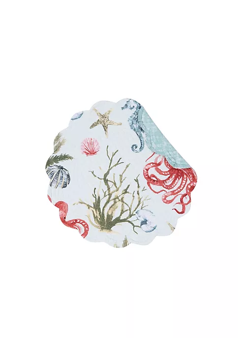 Behari Coastal Sea Life Cotton Quilted Round Reversible Placemat Set of 6