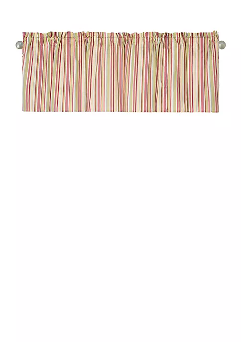 Add a colorful brilliance to your home with the Camelia valance by C & F ENTERPRISES. With a striped print boasting shades of pink, blue, sage green, and white this valance breathes life into any room with a classic, inviting aesthetic.