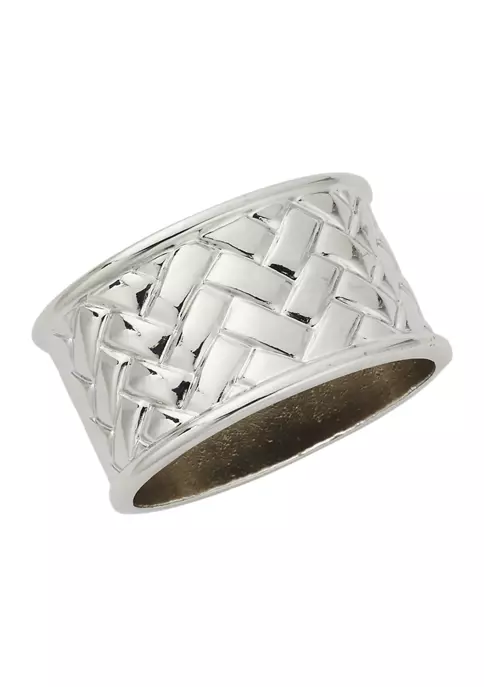 A basketweave design adds dramatic luxe to this napkin ring from C&F.