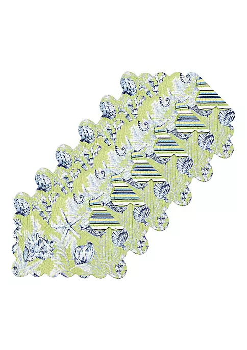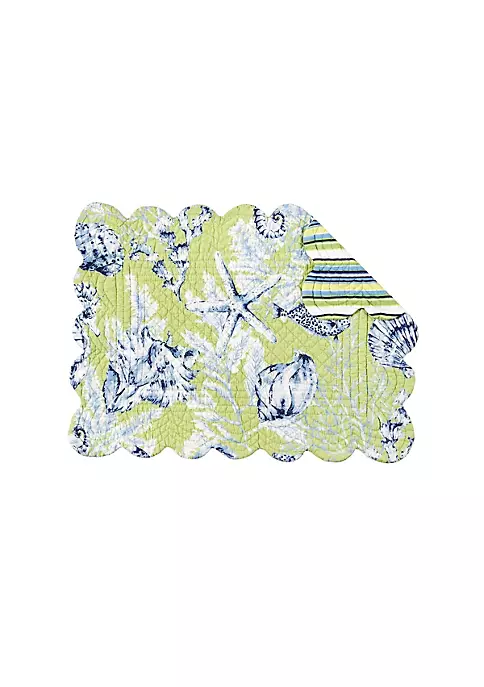 Fenwick Isle Green Coastal Sea Life Cotton Quilted Rectangular Reversible Placemat Set of 6