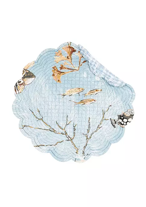Meraki Island Round Quilted Reversible Blue Coastal Placemat Set of 6
