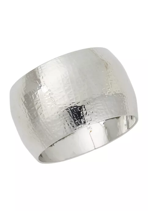 With a hammered silver finish, this napkin ring holder from C&F is the perfect accent for any dinner party.