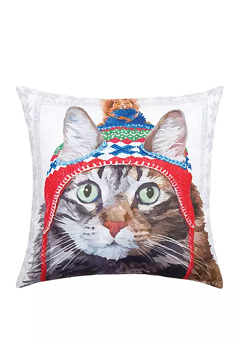 Designed in collaboration with Two Can Art, exclusively for C&F Home, this whimsical pillow features a kitty cat ready to venture into the cold, chilly winter wonderland with his squirrel friend. Fade and mildew resistant, this pillow is crafted with a soft woven polyester cover and plush polyfill for quick drying. The Winter Hat Cat pillow sits comfortably both indoors and out, bringing the perfect finishing touch to your decor.